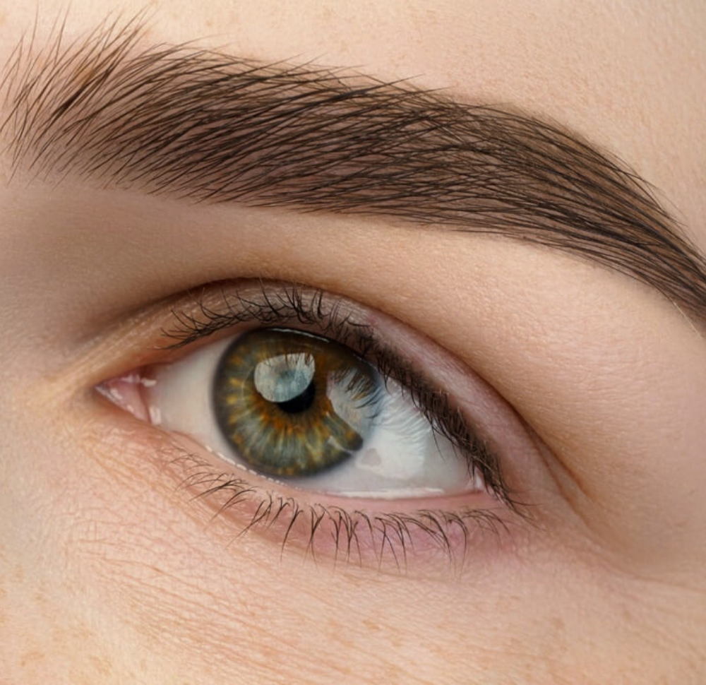 Das Ergebnis sind gleichmäßigere, definiertere Brauen mit deutlich verbesserter Fülle. Der Gesichtsausdruck wirkt wieder klarer und strukturierter, ohne dass die Brauen künstlich oder überzeichnet erscheinen. Die natürliche Brauenform bleibt erhalten, wird jedoch sichtbar stabilisiert.